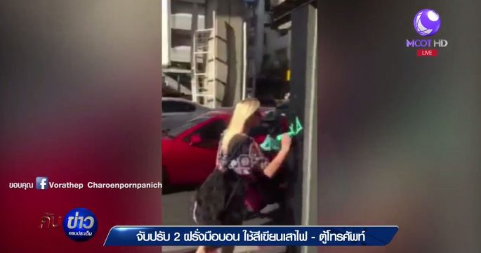 ตำรวจท่องเที่ยวจับกุมชาวต่างชาติ 2 คน ใช้ปากกาสีขีดเขียนทั่วถนนสีลมมาดำเนินคดีได้แล้ว เจ้าตัวเผยทำไปเพราะคึกคะนอง