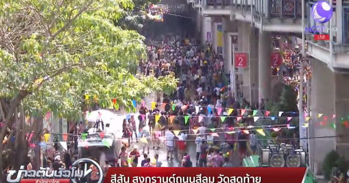 ถนนสีลมเปิดให้เล่นน้ำเป็นวันสุดท้าย คาดคาดการณ์ว่าวันนี้จะมีประชาชนมาเล่นน้ำมากกว่า 1 แสนคน ทำให้เจ้าหน้าที่ต้องเพิ่มความเข้มข้นในการรักษาความปลอดภัย