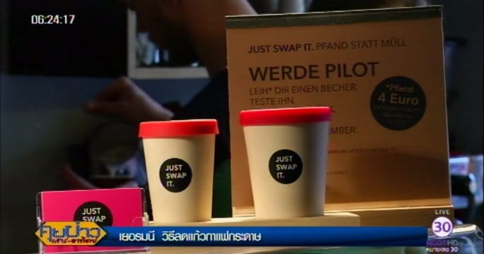 ร้านกาแฟในเยอรมนีมีวิธีลดขยะจากแก้วกระดาษชนิดใช้แล้วทิ้งที่กำลังเป็นที่นิยม แต่ก่อปัญหาขยะกองท่วม ด้วยวิธีใด ติดตามในสีสันต่างประเทศ