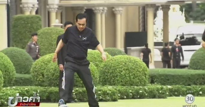 วันนี้ นายกรัฐมนตรีนำข้าราชการของทำเนียบรัฐบาลออกกำลังกายนำร่อง หลังวานนี้มีคำสั่งในที่ประชุม ครม.ให้ทุกวันพุธเป็นช่วงเวลาออกกำลังกายของข้าราชการ งานนี้นายกฯ โชว์สเตปแบบจัดเต็ม