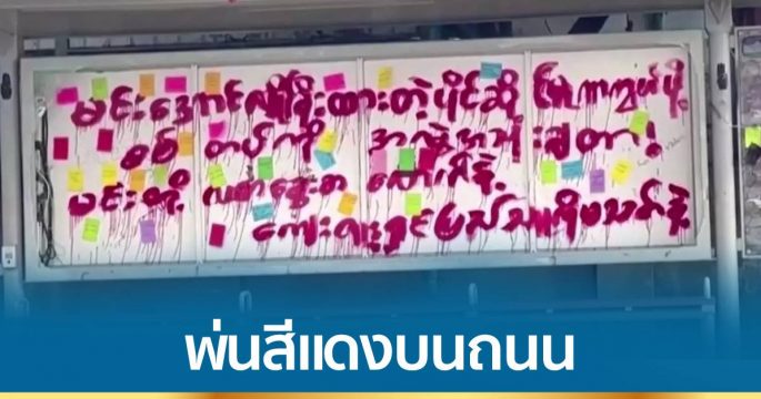 ผู้ต่อต้านรัฐประหารในเมียนมาพากันทาและพ่นสีแดงบนถนนในนครย่างกุ้งวันนี้ เพื่อรำลึกถึงผู้พลีชีพที่ถูกกองทัพสังหาร ขณะที่สถานการณ์ในขณะนี้ยังไม่มีวี่แววว่าจะมีทางออกทางการทูต