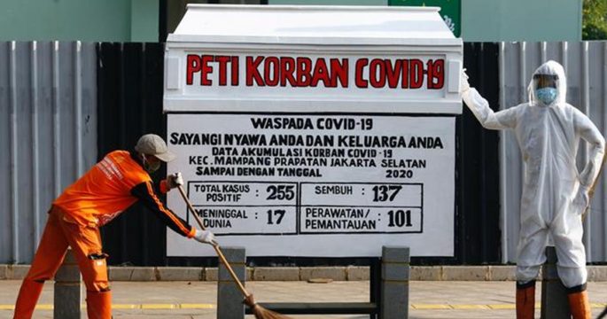 กรุงจาการ์ตาของอินโดนีเซียทดลองใช้เทคนิคน่าตกใจเพื่อยับยั้งโรคติดเชื้อไวรัสโคโรนา 2019 หรือโควิด-19 ด้วยการตั้งโลงศพเปล่ากลางสี่แยกพลุกพล่าน หวังเตือนประชาชนอย่าวางใจแล้วมองข้ามอันตรายของโรคนี้