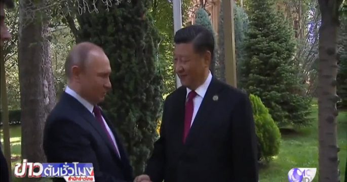 ประธานาธิบดีวลาดิเมียร์ ปูติน ของรัสเซียร่วมฉลองวันคล้ายวันเกิดของประธานาธิบดีสี จิ้นผิง ของจีน ซึ่งในปีนี้มีอายุครบ 66 ปี โอกาสนี้ผู้นำรัสเซียได้มอบเค้กวันเกิด และของขวัญอีกหลายอย่างให้แก่ผู้นำจีน