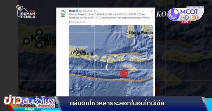 23 มี.ค.-อธิบดี ปภ. ออกประกาศแจ้งเตือน จ.ภูเก็ต พังงา กระบี่ ระนอง ตรัง สตูล เฝ้าระวังติดตามการเกิดสึนามิ หลังเกิดเหตุแผ่นดินไหวในทะเล 2 ครั้งต่อเนื่องทางทิศตะวันตกเฉียงเหนือของ จ.ภูเก็ต ห่างจากชายฝั่งภูเก็ตราว 610 กม. ทั้งนี้ประชาชนในพื้นที่ภูเก็ตระบุว่ารับรู้ได้ถึงแรงสั่นสะเทือน แต่จนถึงขณะนี้ยังไม่มีรายงานการแจ้งเตือนการเกิดสึนามิตามมาแต่อย่างใด.-สำนักข่าวไทย