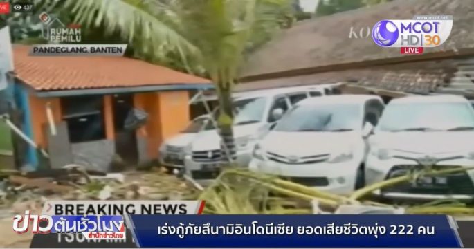ยอดผู้เสียชีวิตสึนามิถล่มเมืองริมชายฝั่งช่องแคบซุนดา อินโดนีเซีย เพิ่มเป็นอย่างน้อย 222 คน ผู้ประสบภัย เริ่มประสบปัญหาขาดแคลนอาหาร น้ำดื่ม