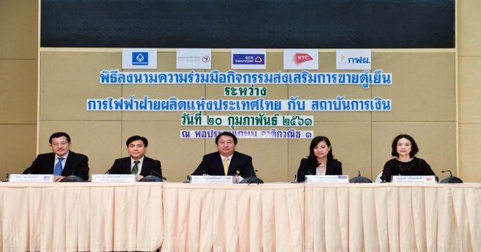 กฟผ.จับมือ 4 สถาบันการเงิน ส่งเสริมการขายตู้เย็นเบอร์ 5 หวังลดก๊าซเรือนกระจก