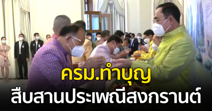 วันนี้ก่อนการประชุมคณะรัฐมนตรี นายกรัฐมนตรีนำ ครม. ทำบุญ เพื่อความเป็นสิริมงคล พร้อมรดน้ำดำหัว ขอพรในเทศกาลปีใหม่ไทย