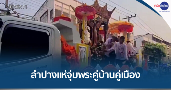 ชาว จ.ลำปาง แต่งกายด้วยชุดพื้นเมือง ร่วมขบวนแห่จุ่มพระคู่บ้านคู่เมือง ขณะที่นักท่องเที่ยวต่างเล่นน้ำกันอย่างสนุกสนาน ตั้งแต่บริเวณหน้าสถานีรถไฟนครลำปางไปสิ้นสุดที่หน้าสำนักงานเทศบาลนครลำปาง