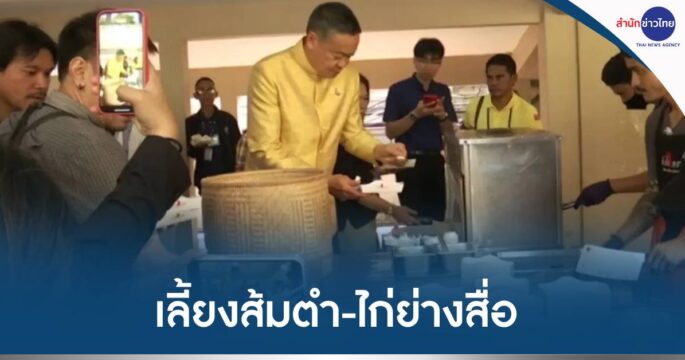 นายกฯ เลี้ยงส้มตำ-ไก่ย่างสื่อมวลชน พร้อมไอศกรีมน้ำตาลโตนด บอก “สุริยะ” เคยนำมาให้ชิมแล้วติดใจ ขณะ “อนุทิน” ร่วมแจมด้วย