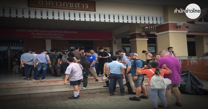 กองทัพสื่อมวลชนทั้งไทยและต่างประเทศ ลงทะเบียนเพื่อเตรียมเข้าฟังการเปิดใจครั้งแรกของน้องๆ ทีมหมูป่าอะคาเดมีทั้ง 13 คน ในช่วงเย็นวันนี้
