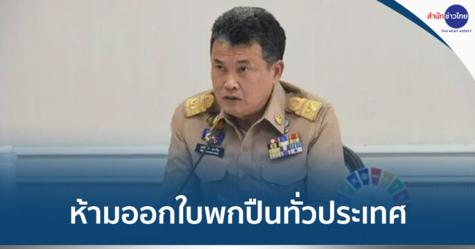 ปลัดมท. เผย สั่งผู้ว่าฯ ทั่วประเทศห้ามออกใบอนุญาตพกพาอาวุธปืน-แบลงค์กัน-สิ่งเทียมอาวุธปืน ทั้ง 76 จังหวัด เพื่อเสริมสร้างความปลอดภัยชีวิต ทรัพย์สินปชช. ความเชื่อมั่นของนักท่องเที่ยว