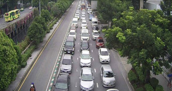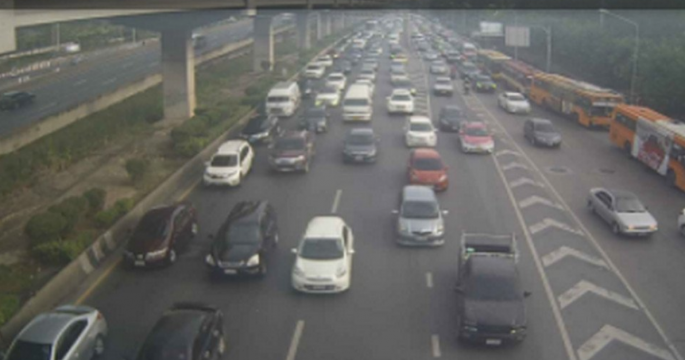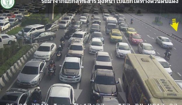 จราจรเช้าวันพุธ ถนนวิภาวดี – รังสิต ขาเข้า จากสุทธิสาร เข้าดินแดง – อนุสาวรีย์ชัยสมรภูมิ รถมาก ช่องทางด่วนสะสมหน้าบริษัทการบินไทย สำนักงานใหญ่ ช่องคู่ขนานท้ายแยกสุทธิสาร