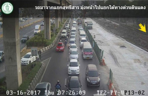 การจราจรเช้าวันอังคาร ถนนวิภาวดี-รังสิต จากสุทธิสาร มุ่งหน้าดินแดง รถมาก เคลื่อนตัวช้า