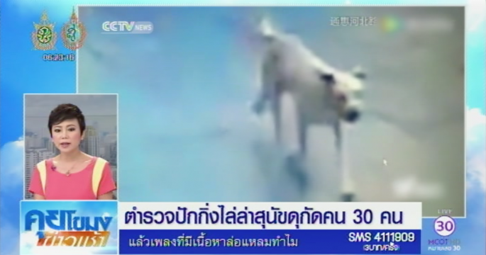 ตำรวจกรุงปักกิ่งของจีนออกติดตามไล่ล่าสุนัขจรจัดที่ไล่กัดคนที่เดินตามท้องถนนใจกลางกรุงปักกิ่งจนบาดเจ็บไปแล้วกว่า 30 คนในช่วงไม่กี่วันที่ผ่านมา