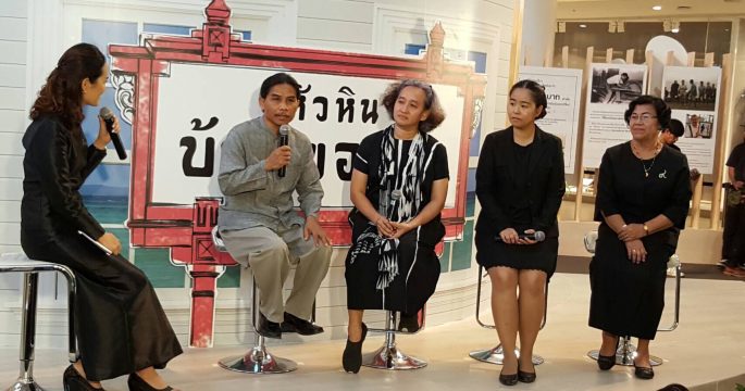 ประจวบฯ จัดงาน “หัวหินบ้านของพ่อ” ศูนย์การค้าบลูพอร์ต อบอวลไปด้วยความซาบซึ้งและความประทับใจจากเรื่องราวของผู้มีโอกาสได้ถวายงานหลายด้าน มีทั้งศิลปินภาพวาด อดีตเจ้าของสุนัขทรงเลี้ยง “หลวงแจ่ม ภักดี” อดีตนักเรียนรายการศึกษาทัศน์ โรงเรียนวังไกลกังวล และประธานกลุ่มสตรีทอผ้าบ้านเขาเต่าโครางการพระราชดำริ