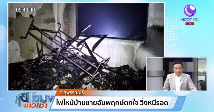 เกิดเหตุไฟไหม้บ้านหรูที่สุพรรณบุรี เจ้าของบ้านวัย 65 ปี ป่วยอัมพฤกษ์มานานหลายปี ตกใจวิ่งหนีออกมาจากบ้านโดยไม่รู้ตัว รอดชีวิต ทรัพย์สินเสียหายมูลค่าไม่ต่ำกว่า 300,000 บาท