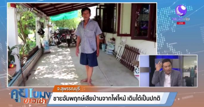 ชายชาวสุพรรณฯ วัย 65 ปี หายป่วยอัมพฤกษ์ หลังวิ่งหนีเอาชีวิตรอดจากไฟไหม้บ้านเมื่อคืนก่อน เปิดใจได้อย่างเสียอย่าง กลับมาเดินได้ปกติ แต่เสียบ้าน ตอนนี้ยังทำใจไม่ได้ ย้ายไปอยู่บ้านน้องสาวก่อน จนกว่าสภาพจิตใจจะดีขึ้น