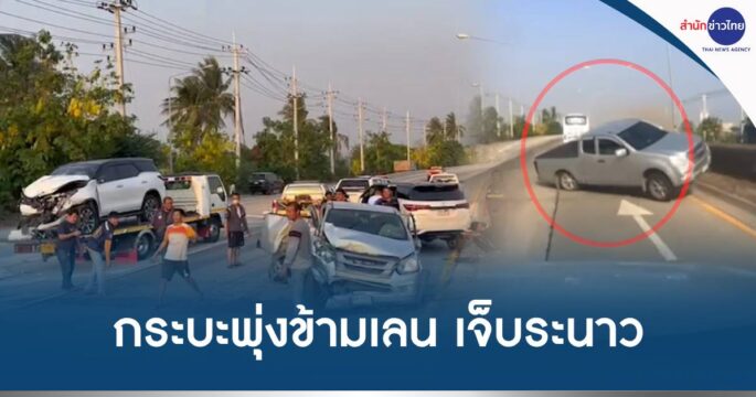 รถกระบะเสียหลักข้ามเลนพุ่งชนรถคณะที่ปรึกษา รมว.พัฒนาสังคมฯ เจ็บระนาว 8 คน และในจำนวนนี้ สาหัส 2 คน กล้องหน้ารถจับภาพไว้ชัด
