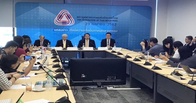 ส.อ.ท.เผยดัชนีเชื่อมั่นอุตฯ เม.ย.62 ปรับตัวลงครั้งแรกรอบ 4 เดือน จากการเร่งผลิตเดือนก่อน เศรษฐกิจโลกซบเซา สงครามการค้า