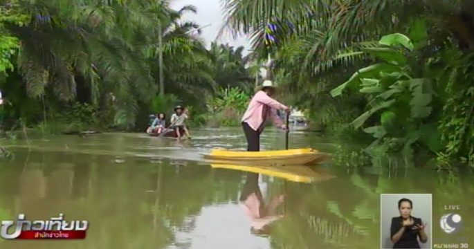สถานการณ์น้ำท่วมหลายจังหวัดภาคใต้ยังวิกฤติ ล่าสุด อ.พระแสง จ.สุราษฎร์ธานี ระดับน้ำสูงกว่าเมื่อวาน 1 เมตร เนื่องจากมีมวลน้ำไหลลงแม่น้ำตาปี