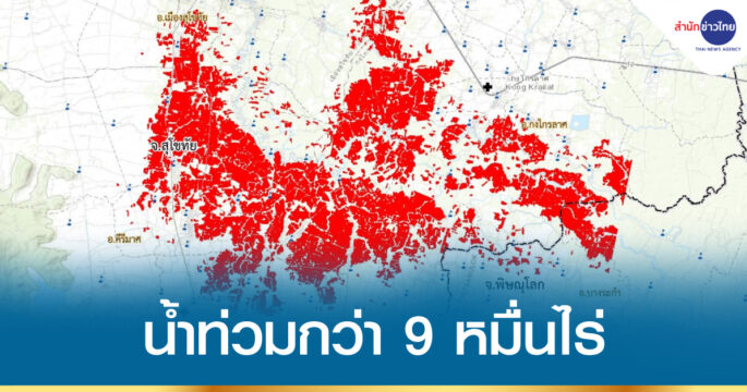 GISTDA เปิดเผยภาพจากดาวเทียม พบพื้นที่น้ำท่วมขังใน จ.สุโขทัย และพิษณุโลก รวมกว่า 9 หมื่นไร่ พื้นที่ปลูกข้าวได้รับผลกระทบแล้วกว่า 3 หมื่นไร่