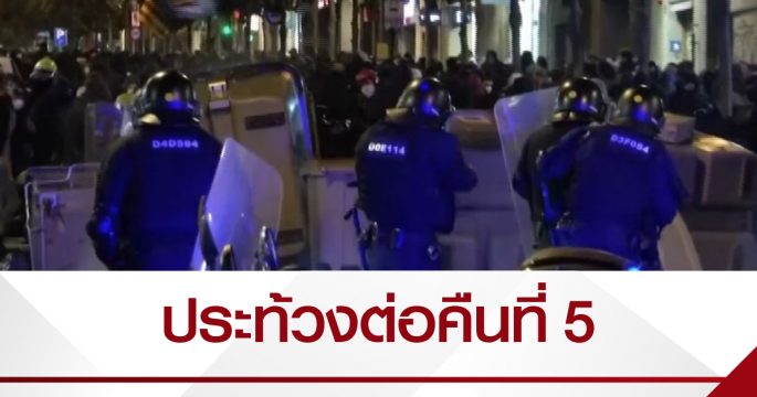 การประท้วงในเมืองบาร์เซโลนาของสเปน ยังเกิดขึ้นต่อเนื่องเป็นคืนที่ 5 มีรายงานผู้ได้รับบาดเจ็บ 9 คน และมีผู้ประท้วงถูกตำรวจจับกุมจำนวนหนึ่ง