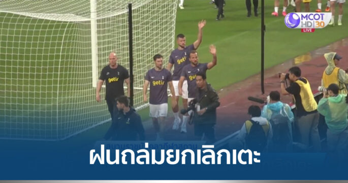 ยกเลิกเกมฟุตบอลนัดอุ่นเครื่องปรีซีซั่น สเปอร์ส พบกับ เลสเตอร์ ซิตี้ ที่ราชมังคลากีฬาสถาน หลังฝนตกหนัก สนามมีน้ำขัง ไม่ปลอดภัยต่อการลงเล่น
