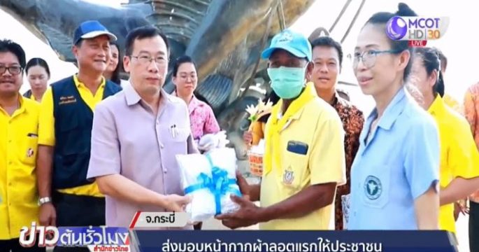 รองผู้ว่าฯ กระบี่ เป็นประธานส่งมอบหน้ากากอนามัยกว่า 3,100 ชิ้น แก่ผู้แทนองค์กรปกครองส่วนท้องถิ่น เพื่อนำแจกจ่ายประชาชน