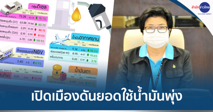 เปิดเมือง ท่องเที่ยวฟื้น คาดปีนี้ยอดใช้น้ำมันโตอีก หลังจากปี 2565 เฉลี่ยใช้ 151.16 ล้านลิตร/วัน เพิ่มขึ้นร้อยละ 13.5 โดยเฉพาะน้ำมัน Jet โตสูงสุด เพิ่มขึ้นร้อยละ 91.6 ส่วนราคาที่พุ่งทำให้ไทยมีมูลค่านำเข้าน้ำมันรวม 1.34 ล้านล้านบาท โตถึงร้อยละ 72