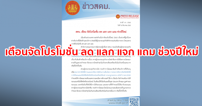 สคบ. เตือน จัดโปรโมชั่น ลด แลก แจก แถม ช่วงปีใหม่