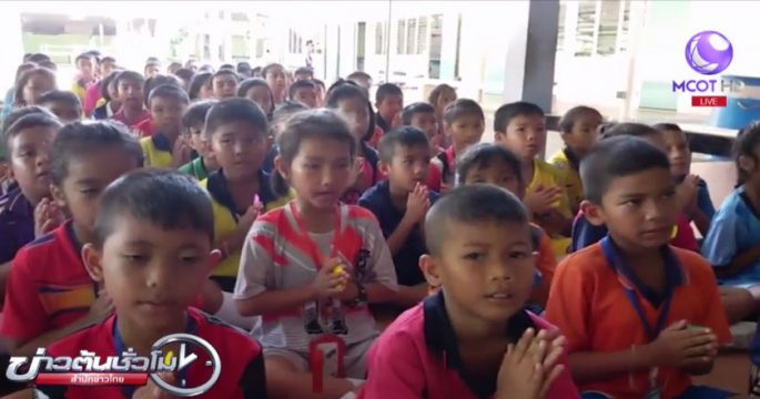 คณะครู บุคลากรทางการศึกษา นักเรียนโรงเรียนอนุบาลลำทับ จ.กระบี่ กว่า 800 คน ร่วมกันสวดมนต์ นั่งสมาธิ อธิษฐานจิตขออำนาจสิ่งศักดิ์สิทธิ์ช่วยคุ้มครอง 13 ชีวิต ที่ติดอยู่ภายในถ้ำหลวง-ขุนน้ำนางนอน
