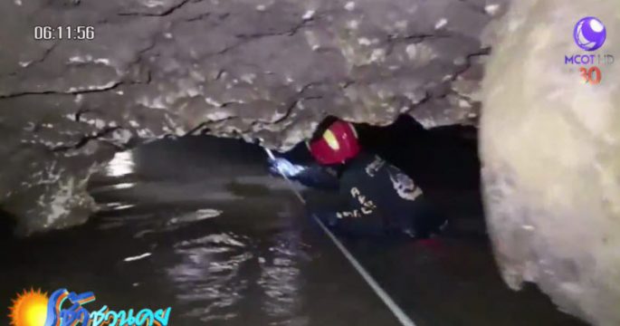 เจ้าหน้าที่ลากสายอากาศออกซิเจนเข้าถ้ำหลวง-ขุนน้ำนางนอน เพื่อเติมออกซิเจนเข้าถ้ำ หลังพบว่าอากาศภายในถ้ำเบาบาง