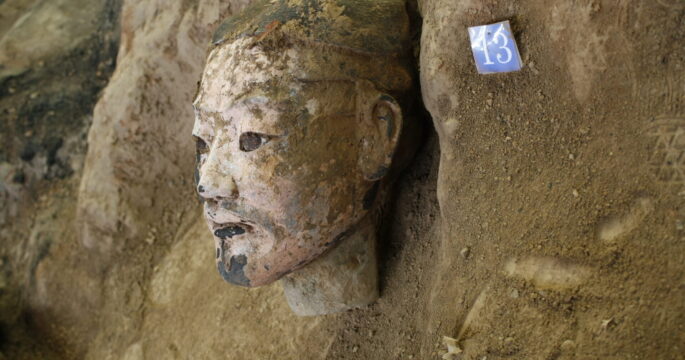ซีอัน, 12 ม.ค. (ซินหัว) — วันพฤหัสบดี (12 ม.ค.) สำนักโบราณวัตถุวัฒนธรรมมณฑลส่านซีทางตะวันตกเฉียงเหนือของจีน เปิดเผยการขุดพบทหารดินเผาเพิ่มกว่า 220 ตัว จากหลุมฝังศพใกล้กับสุสานจิ๋นซีฮ่องเต้ในมณฑล การค้นพบดังกล่าวมีขึ้นระหว่างการขุดค้นครั้งใหญ่ที่เริ่มต้นเมื่อปี 2009 ซึ่งถือเป็นการขุดค้นทางโบราณคดีครั้งที่ 3 ของหลุมหมายเลขหนึ่ง ในพื้นที่ขนาดประมาณ 430 ตารางเมตร โดยคณะนักโบราณคดียังขุดพบม้าดินเผา 16 ตัว รถม้า 4 คัน อาวุธบางส่วน และอุปกรณ์การผลิต เซินเม่าเซิ่ง นักวิจัยจากพิพิธภัณฑ์สุสานจักรพรรดิฉินสื่อหวงหรือจิ๋นซีฮ่องเต้ ระบุว่าทีมวิจัยพบความคืบหน้าหลายประการระหว่างการขุดค้น อาทิ คำอธิบายเบื้องต้นเกี่ยวกับรูปแบบการจัดขบวนกองทัพทหารดินเผาภายในหลุม รวมถึงขั้นตอนการผลิตทหารดินเผาที่จะมีการแกะสลักรายละเอียดบนร่างรูปปั้นก่อนประกอบเข้ากับแขน อนึ่ง หลุมหมายเลขหนึ่งเป็นหลุมฝังศพขนาดใหญ่ที่สุดที่พบใกล้กับสุสานฯ และครอบคลุมพื้นที่ 14,260 ตารางเมตร โดยมีการสันนิษฐานจากการจัดเรียงแถวกองทหารว่าหลุมแห่งนี้อาจมีรูปปั้นทหารและม้าดินเผามากกว่า 6,000 ตัว หากเสร็จสิ้นการขุดสำรวจอย่างเต็มรูปแบบ-สำนักข่าวซินหัว คลิกเพื่ออ่านข่าวภาษาอังกฤษ https://english.news.cn/20230112/148b8a0e6a2e4e92b9dab8e1506c4aee/c.htmlอ่านข่าวที่เกี่ยวข้อง https://www.xinhuathai.com/china/331982_20230112ขอบคุณภาพจาก Xinhua