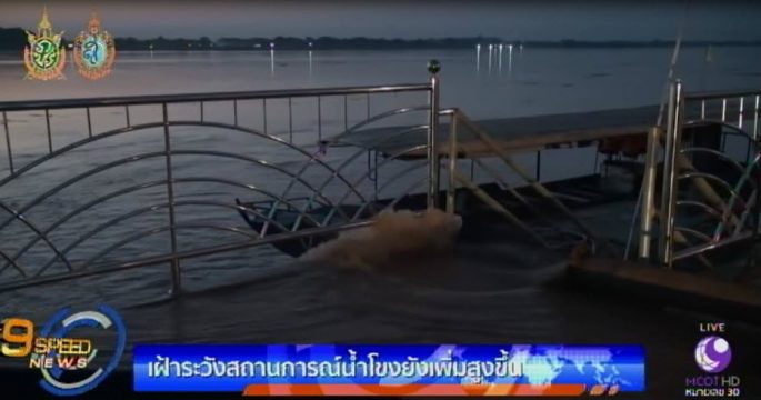 ระดับน้ำโขงยังคงเพิ่มสูงขึ้น โดยที่ จ.หนองคาย แม้จะเพิ่มลดลงกว่าเมื่อวานนี้ และมีแนวโน้มทรงตัว แต่ที่ อ.เมือง น้ำเอ่อล้นเขื่อนป้องกันตลิ่งและสวนปาล์ม