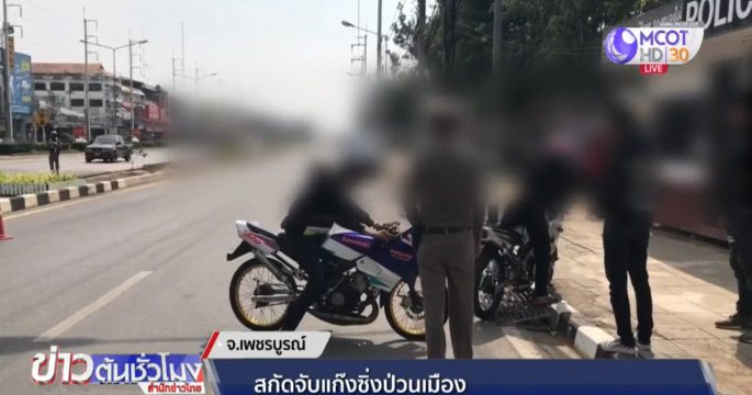 ตำรวจภูธรหนองไผ่ จังหวัดเพชรบูรณ์ สกัดจับแก๊งรถจักรยานยนต์ซิ่ง ใกล้กับสี่แยกไฟแดง อำเภอหนองไผ่ หลังพบขับขี่ด้วยความเร็วมาเป็นกลุ่มคราวละกว่า 10 คัน จึงเรียกขอตรวจค้นอย่างละเอียด