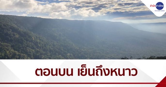 กรมอุตุฯ เผยไทยตอนบนอุณหภูมิจะลดลง 1-3 องศาฯ ยอดดอยและยอดภูมีอากาศหนาว ขอให้ประชาชนบริเวณภาคเหนือ อีสาน และภาคกลาง ดูแลสุขภาพเนื่องจากสภาพอากาศที่หนาวเย็นลงไว้ด้วย