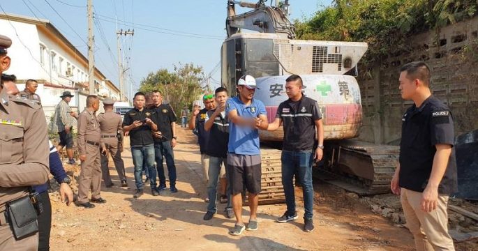 คนขับแบ็คโฮหนีข้ามแดนมอบตัวแล้วคดียิงเจ้าของวังกุ้งดับกลางซอย