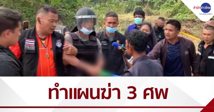 ตำรวจคุมตัวหนุ่มลาววัย 38 ปี ทำแผนประกอบคำรับสารภาพ หลังก่อเหตุฆ่า 3 ศพ ในสวนยางพารา ทั้งนายจ้าง พลเมืองดีเข้ามาช่วย และภรรยาตัวเอง