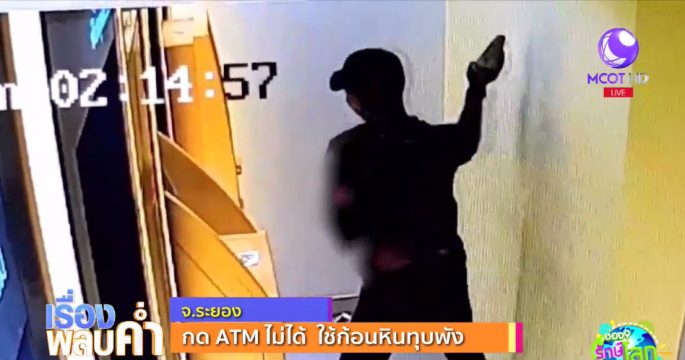 หนุ่มหัวร้อน ใช้ก้อนปูนทุบตู้เอทีเอ็มพังยับ หลังกดเงินไม่ได้ ตำรวจเร่งตามตัวมาดำเนินคดี
