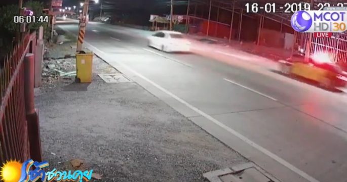 วงจรปิดจับภาพนาทีระทึก เมื่อรถเก๋งหนีการตรวจค้นของตำรวจทางหลวงที่ไล่ตามจับ ก่อนจนมุมพุ่งลงแอ่งน้ำ คนขับทิ้งรถหนี ขณะที่คนนั่งถูกรวบตัวได้ สารภาพเพิ่งเสพยามา