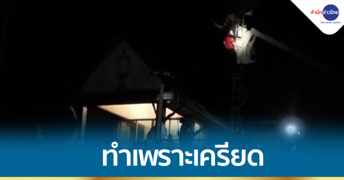 หนุ่มเมียนมาเครียด บวกเมา ปีนเสากระจายเสียงในวัด สูง 10 เมตร เจ้าหน้าที่พยามยามเกลี้ยกล่อมยังไงก็ไม่ยอมลง จนเพื่อนต้องปีนขึ้นไปดึงตัวลงมาอย่างทุลักทุเล