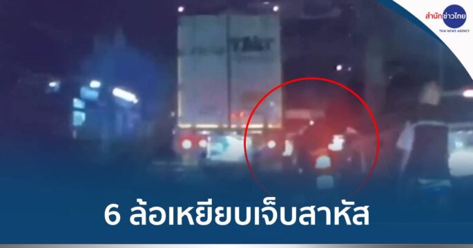 กล้องบันทึกภาพนาทีระทึก บริเวณปากซอยสุขสวัสดิ์ ชายวัย 65 ปี ขี่รถจักรยานยนต์ พยายามแซงรถบรรทุก โดยแทรกช่องกลางระหว่างรถสองคัน ถูกรถบรรทุกเหยียบร่าง เจ็บสาหัส