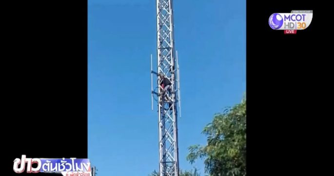 นายศุภนิมิตร อายุ 36 ปี ปีนขึ้นไปบนยอดเสารับสัญญาณโทรศัพท์ สูงกว่า 30 เมตร ริมถนนสายสระบุรี – หล่มสัก ตำบลยางงาม อำเภอหนองไผ่ จังหวัดเพชรบูรณ์ สภาพอิดโรย ร้องไห้ฟูมฟาย ร้องเรียกหาภรรยาเป็นระยะ