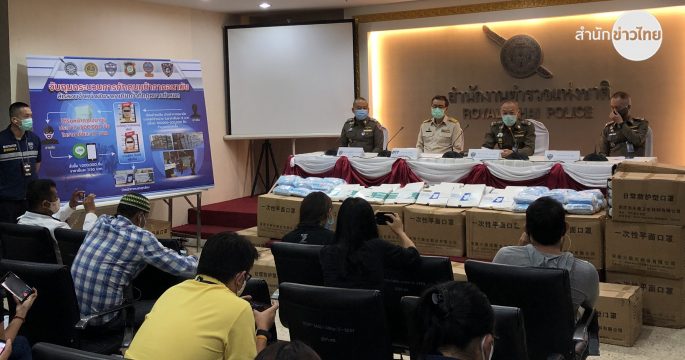 ตำรวจ ศปอส.ตร.จับนายหน้านำเข้าหน้ากากอนามัยจากจีน ยึดของกลางเกือบ 5 แสนชิ้น เป็นการกักตุน เพื่อขายราคาเกินกฎหมายกำหนด
