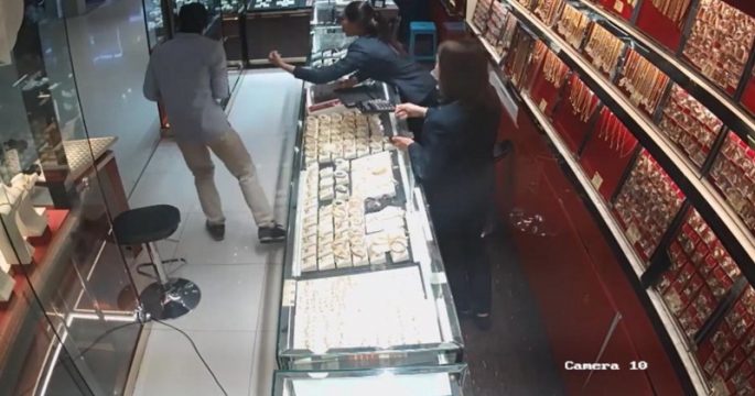 ตำรวจเร่งค้นวงจรปิดหาเบาะแสตามจับชายสวมหมวกแก๊ปใช้หน้ากากอนามัยอำพรางหน้า ทำทีมาซื้อทองช่วงเวลาร้านใกล้ปิดในห้างเมืองสมุทรสาคร ฉวยโอกาสชิงทองรูปพรรณหลบหนี 6 บาท