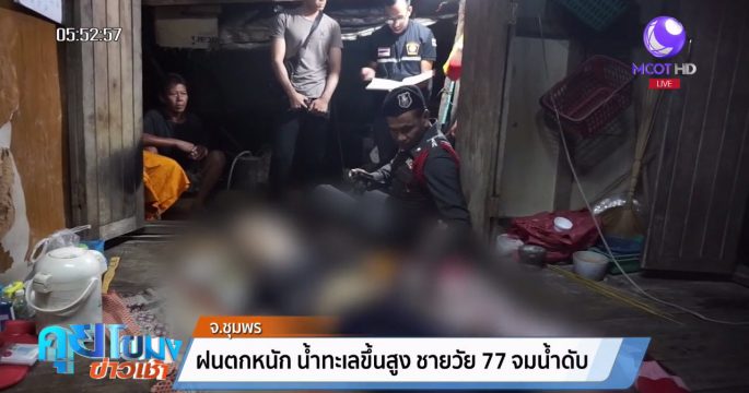 ชุมพรฝนตกหนักหลายชั่วโมงติดต่อกัน ชายวัย 77 ปี จมน้ำทะเลดับหน้าบ้าน คาดผู้ตายจะออกมาเก็บขยะที่ลอยน้ำมาติดบันไดหน้าบ้านซึ่งอยู่ริมทะเล แล้วเกิดเสียหลักลื่นตกลงไปในน้ำจนเสียชีวิต
