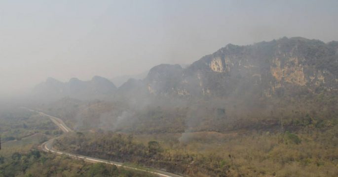 ลำปาง 23 มี.ค.- ลำปางหนักอีกระลอกหมอกควันไฟปกคลุมเมือง ดอยพระบาทไฟปะทุซ้ำเห็นชัดเป็นแนวยาว จนท.ระดมสกัดทั้งคืน ค่าฝุ่นเล็กทะลุพิกัด มากสุดแม่เมาะ เตรียม ฮ.ขึ้นบินสำรวจ ศูนย์อำนวยการเฉพาะกิจป้องกัน และแก้ไขปัญหาไฟฟ้า และหมอกควันไฟของ จ.ลำปาง รับแจ้งเหตุเกิดไฟไหม้ป่าอีกหลายจุด โดยเฉพาะเทือกเขาดอยพระบาท อ.เมือง จ.ลำปาง ปะทุขึ้นอีกครั้ง และตลอดคืนที่ผ่านมา (22 มี.ค.) ประชาชนตัวเมืองลำปางบนตึกสูงสามารถมองเห็นแนวไฟป่าได้อย่างชัดเจนเป็นแนวยาวกว่า 2 กิโลเมตร เพราะดอยพระบาทอยู่ห่างตัวเมืองเพียง 7 กิโลเมตรเท่านั้น เจ้าหน้าที่หลายหน่วยงานและจิตอาสาเฮาฮักม่อนพระยาแช่ช่วยกันเร่งดับไฟมาอย่างต่อเนื่องจนถึงเช้านี้ ขณะเดียวกันยังรู้สึกได้ถึงกลิ่นเผาไหม้และหมอกควันไฟปกคลุมหลายพื้นที่ ทั้งในตัวเมืองลำปาง และอำเภอรอบนอก ส่วนค่าฝุ่นละอองขนาดเล็กจากการเผาไหม้วันนี้ได้สูงเกินค่ามาตรฐาน 120 ไมโครกรัมต่อลูกบาศก์เมตร โดยวัดได้ที่ ต.บ้านดง อ.แม่เมาะ 221 ไมโครกรัมฯ และ ต.พระบาท อ.เมือง 173 ไมโครกรัมฯ นายสุวัฒน์ พรมสุวรรณ ผู้ว่าราชการจังหวัดลำปาง ในฐานะผู้อำนวยการศูนย์ฯ กำชับหน่วยงานที่เกี่ยวข้องเร่งควบคุมไฟป่า เพราะครั้งนี้จังหวัดลำปางประสบปัญหาหมอกควันไฟที่ปกคลุมในพื้นที่เป็นครั้งที่ 3 และวันนี้เฮลิคอปเตอร์ของกระทรวงทรัพยากรธรรมชาติและสิ่งแวดล้อม […]