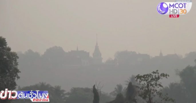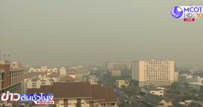 เชียงใหม่ท้องฟ้าปกคลุมด้วยหมอกควันจากไฟป่า ทำให้ค่าฝุ่นละออง PM 2.5 เพิ่มสูงขึ้นต่อเนื่อง ส่วนเชียงรายบริเวณชายแดนไทย-เมียนมา มีหมอกควันและฝุ่นละอองขนาดเล็กลอยปกคลุมหนาแน่น