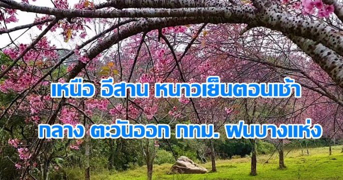 กรมอุตุฯ พยากรณ์อากาศ 24 ชม.ข้างหน้า ภาคเหนือและอีสานยังมีอากาศเย็นถึงหนาว กับมีหมอกในตอนเช้า ส่วนภาคกลางและตะวันออกมีอากาศเย็นกับมีหมอกในตอนเช้า โดยมีฝนฟ้าคะนองบางแห่ง ขณะที่ กทม.-ปริมณฑล มีหมอกในตอนเช้า ฝนเล็กน้อยบางแห่ง