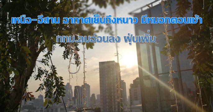 กรมอุตุฯ พยากรณ์อากาศ ภาคเหนือและอีสานยังมีอากาศเย็นถึงหนาว กับมีหมอกในตอนเช้า ส่วนภาคกลางและตะวันออกอากาศเย็นกับมีหมอกในตอนเช้า ภาคใต้มีฝนฟ้าคะนองบางแห่ง สถานการณ์ฝุ่นละออง กทม.-ปริมณฑล การสะสมของฝุ่นละอองและหมอกควันเพิ่มมากขึ้น